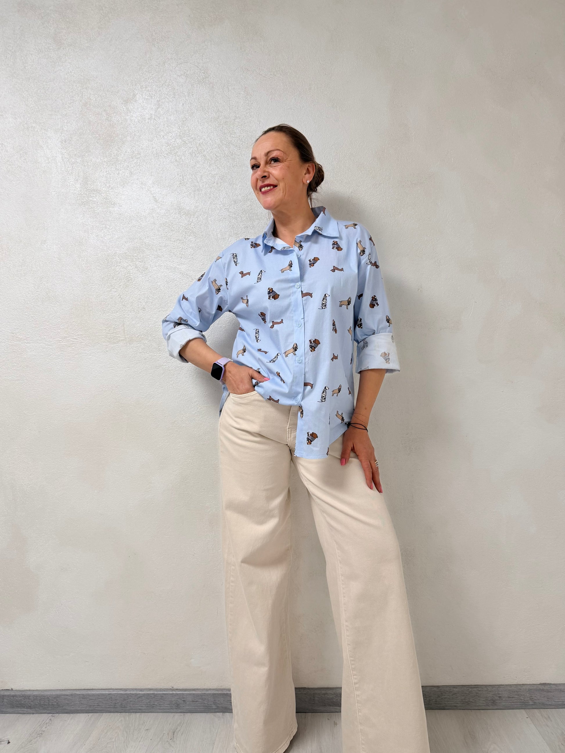 Fantasia con piccoli cagnolini, perfetta per dare un tocco originale anche ai look più semplici.