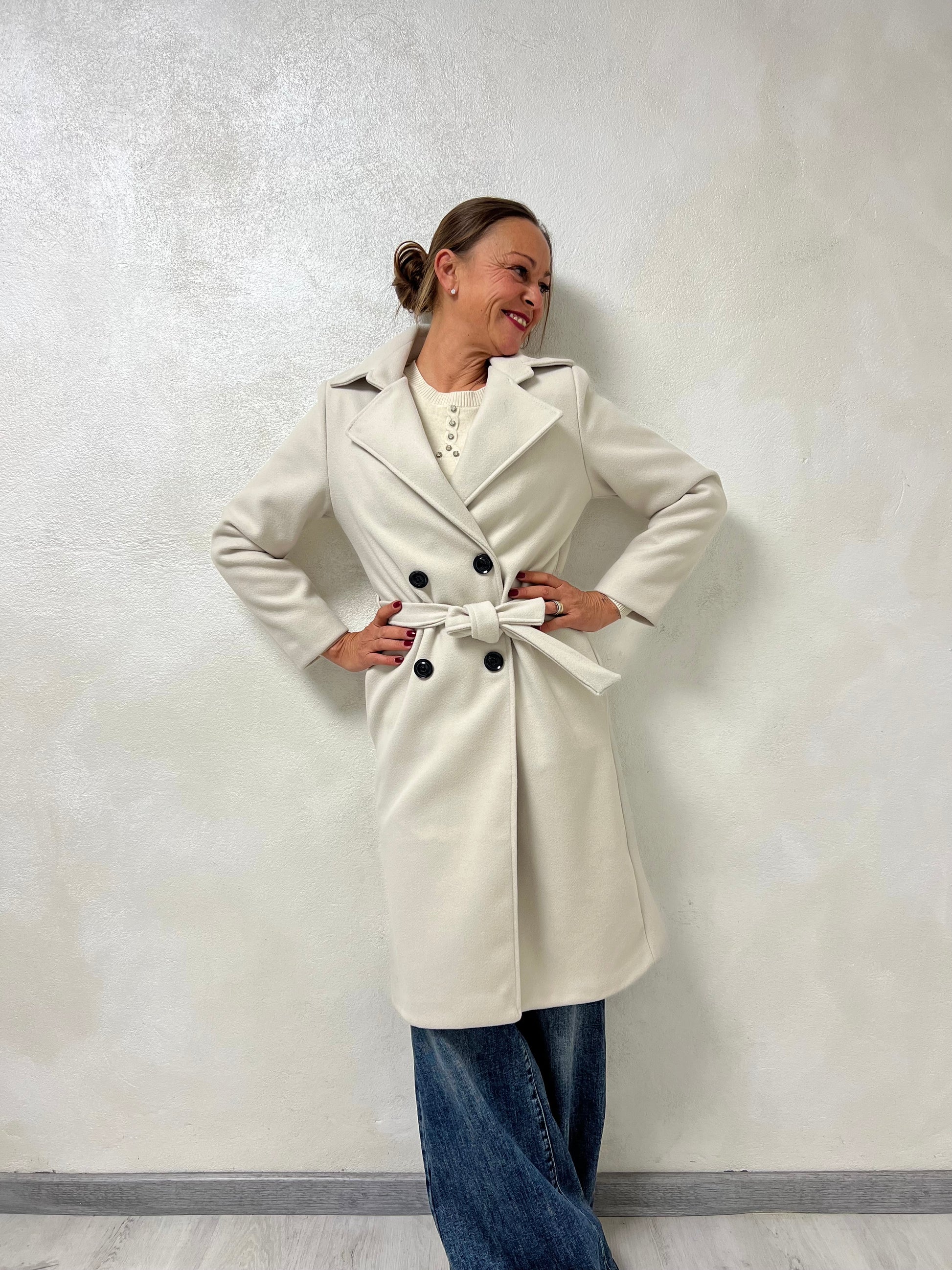 Il Cappotto Armonia e un capo elegante e senza tempo, pensato per valorizzare ogni silhouette con una linea pulita e raffinata. Il modello presenta una chiusura a doppio petto che dona struttura, mentre lo spallotto interno definisce delicatamente la spalla per una resa impeccabile.
