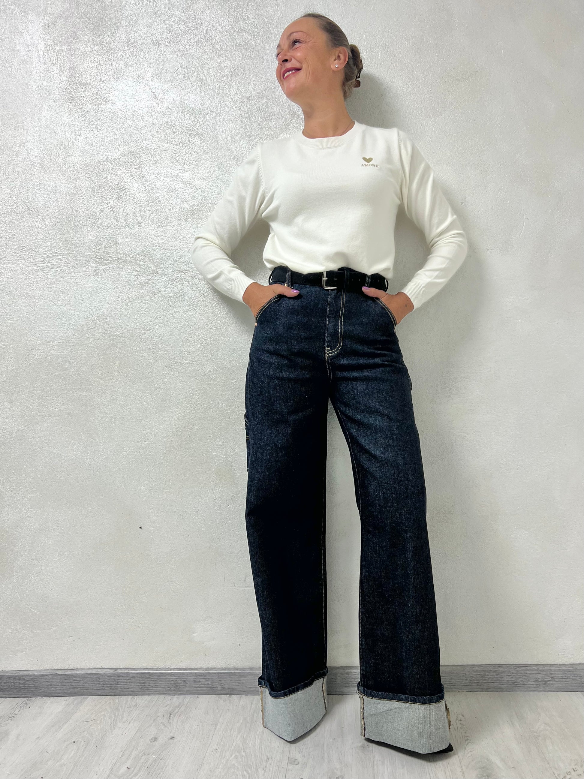 L'orlo risvoltato aggiunge un dettaglio chic, mentre la vita alta offre una linea elegante e proporzionata. Abbinali con un maglione, una t-shirt o una camicia per un look versatile che cattura l'attenzione.