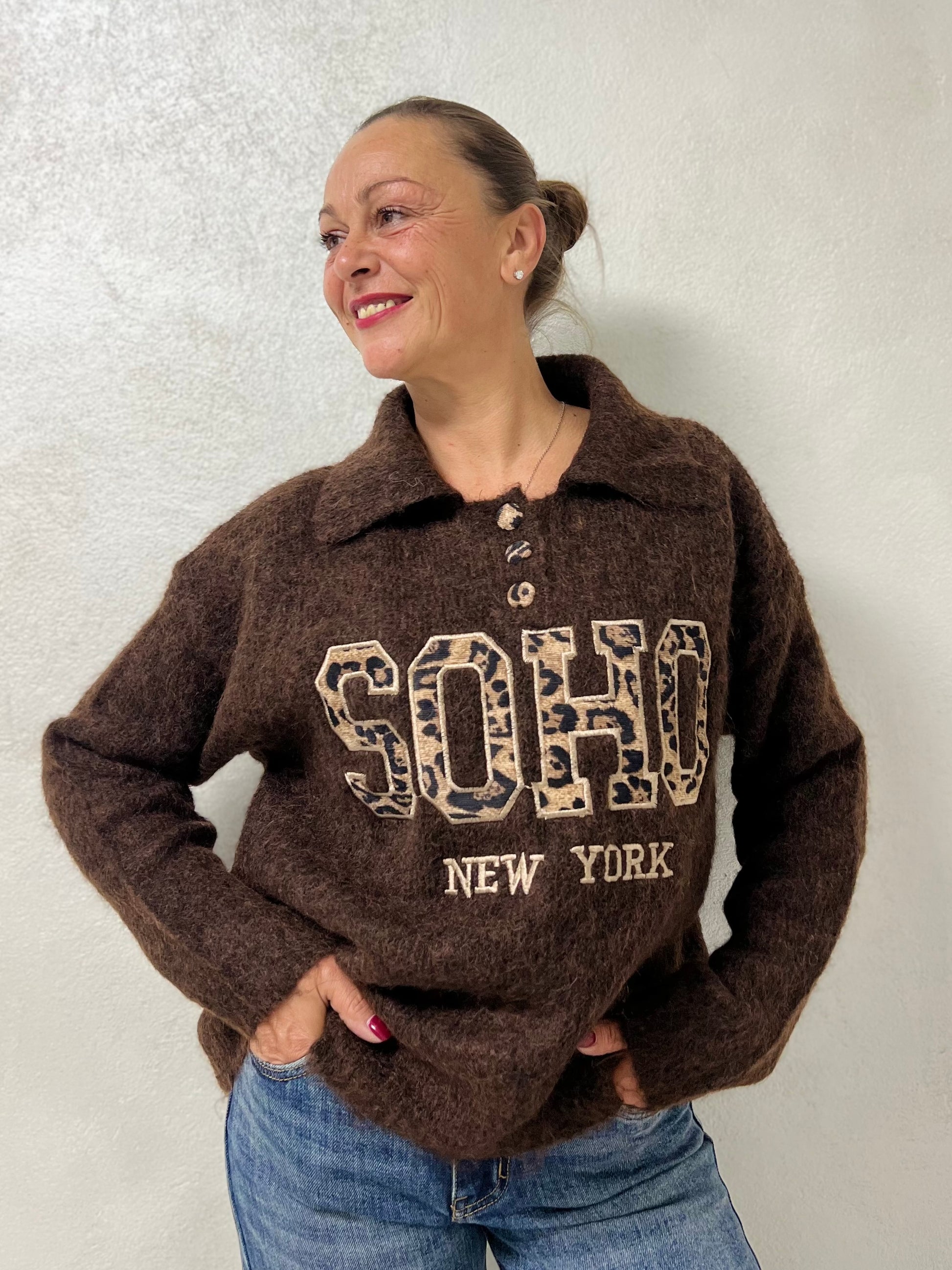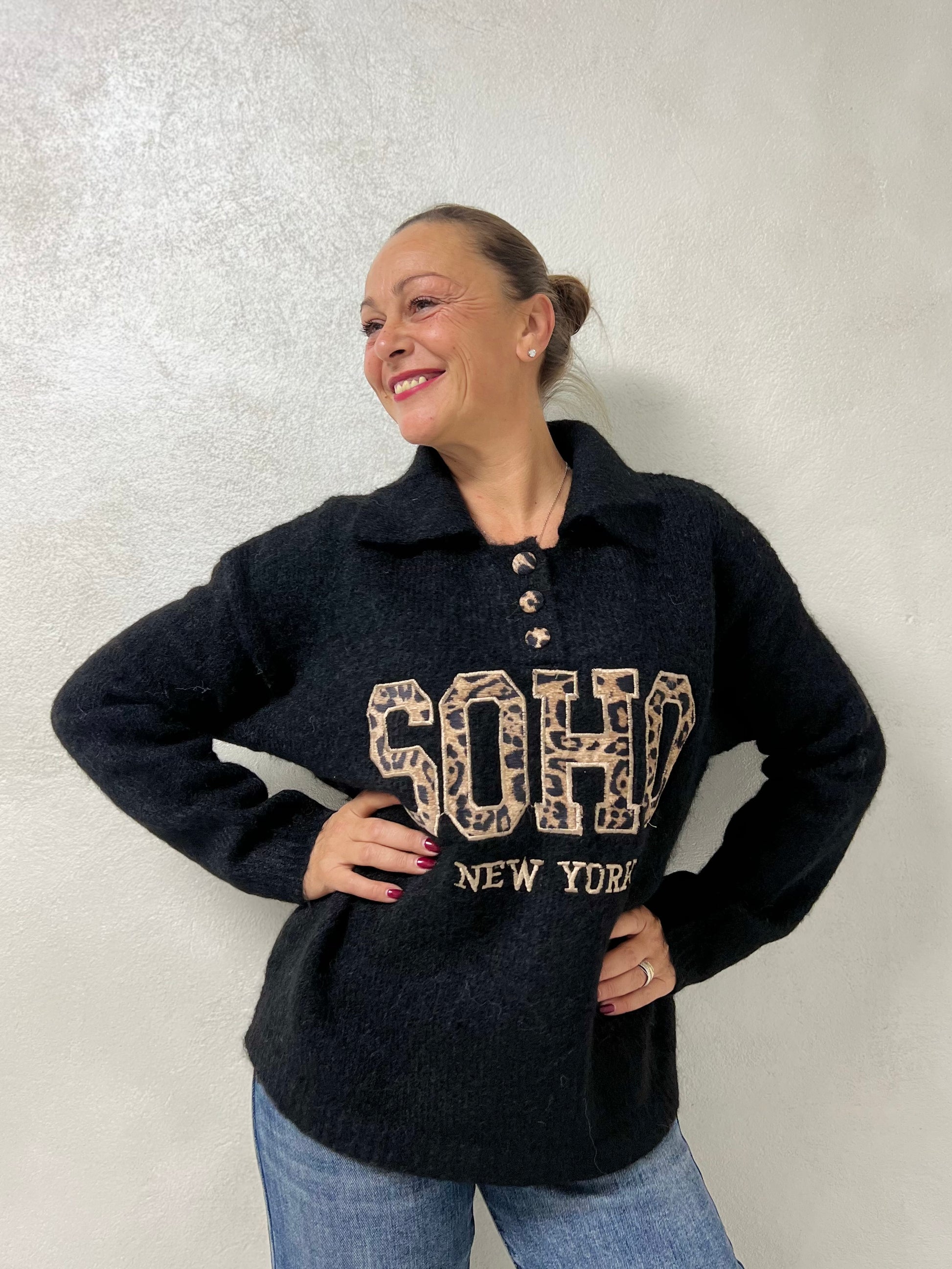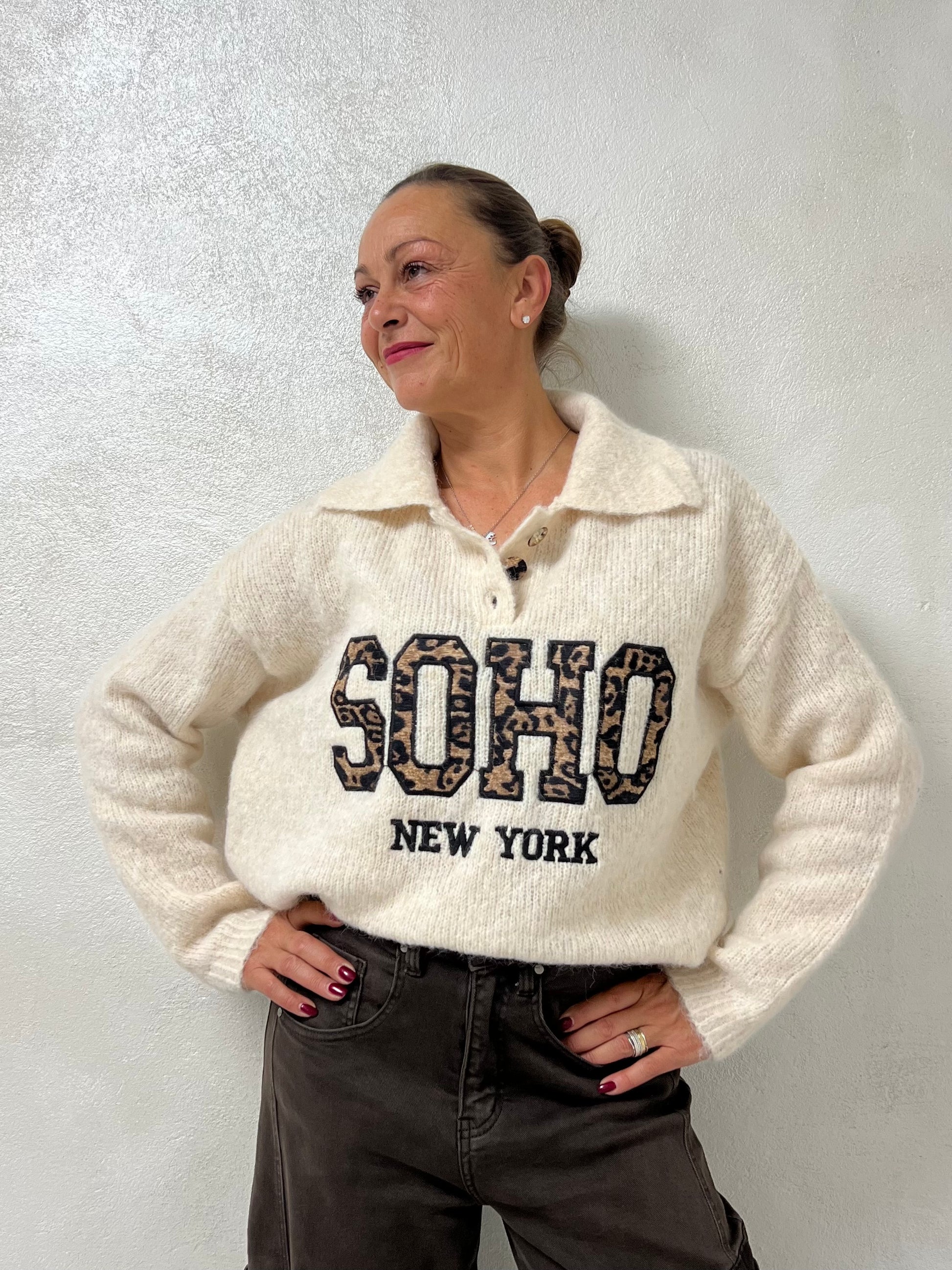 Il modello “Soho” unisce comfort e stile grazie alla texture morbida e alla stampa centrale dal gusto metropolitano.